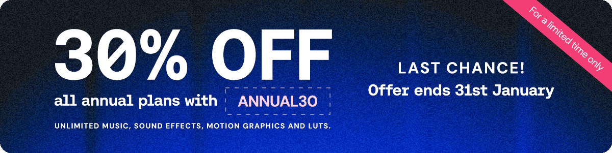 Or why not commit to your creativity with an Uppbeat subscription? For a limited time only you can get 30% off all annual plans with code ANNUAL30 at checkout. But hurry, this deal ends January 31st!